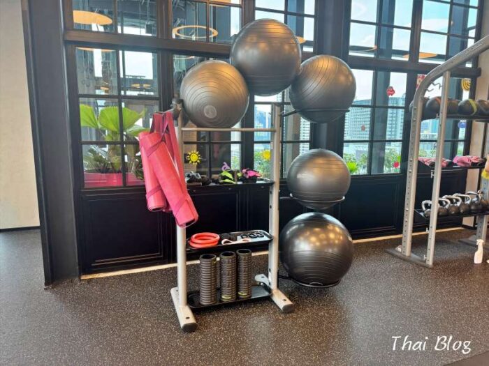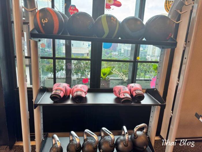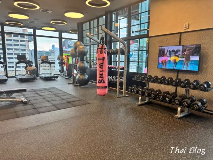 ピンクのサンドバッグがモクシーらしい!旅先でもしっかり体を動かしたい僕には、最高の設備でした。