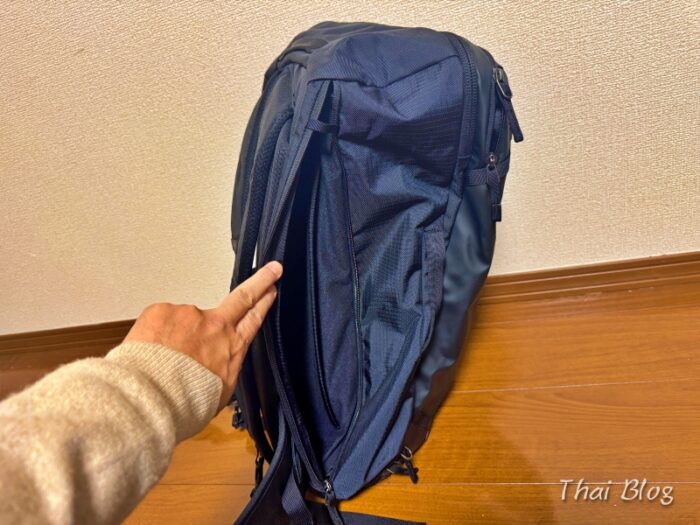 メイン収納とは独立していて、カバンの側面のファスナーで開けしめします。