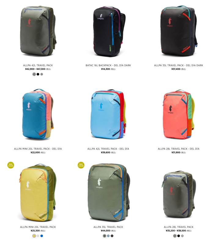 コトパクシ(Cotopaxi)のカバンの中で、機内持ち込みに最適なバックパックは Allpa というシリーズのバッグです。