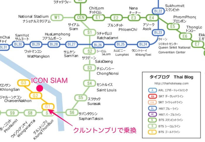 チャルンナコーン駅(Charoen Nakhon / G2)で下車。改札を出ると目の前がアイコンサイアムです。