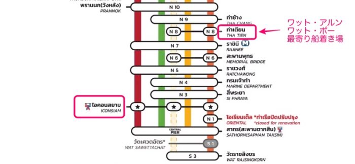 - ワット・アルン、ワット・ポーからだとターティエン(N8)が最寄り