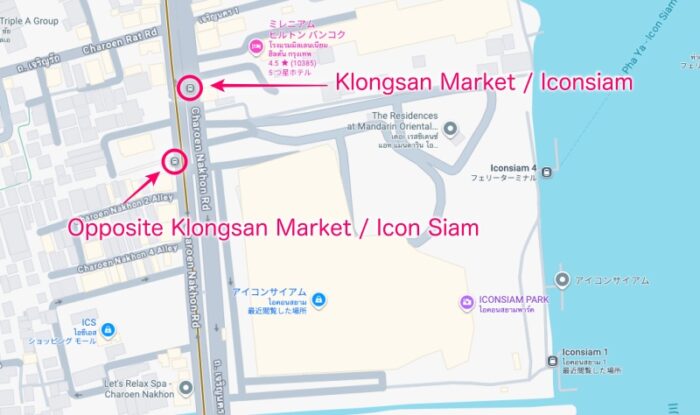 2020年に開通した新しい路線「BTSゴールドライン」のチャルンナコーン駅(Charoen Nakhon / G2)を利用すれば、駅とアイコンサイアムが直結しているため、徒歩0分で到着します。