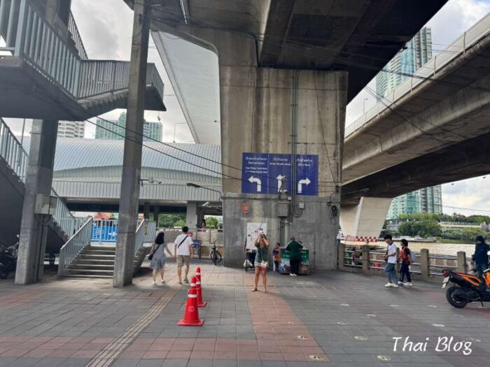 - 2番出口を出て、チャオプラヤー川の船着き場(サトーンピア)へ進みます。