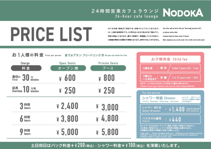 • 座席 リクライニングチェア、マット(座敷)、オープンエリアなど好きな場所を選択可
