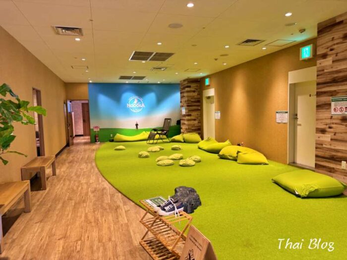 座席の種類も豊富で、ゆったりくつろげるソファ席、仕事に集中できるデスク席、そしてなんと、足を伸ばしてゴロゴロできる芝生エリアまで!これは子連れファミリーにも嬉しいポイントですね。