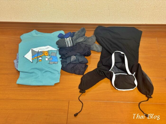 私の場合は、Tシャツ3枚、下着3日分、靴下3足でちょうどいいくらいでした。