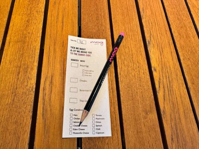 オムレツや目玉焼きは、テーブルに置かれたオーダーシートで具材を細かくカスタマイズできます。