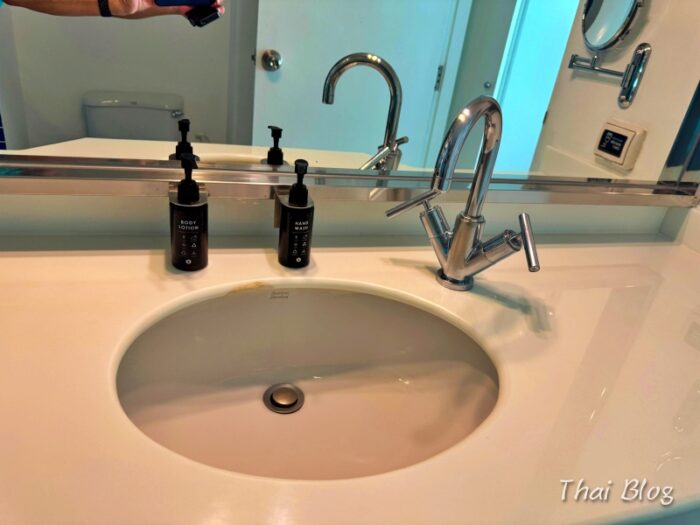 ナイトホテル・バンコクのバスルームはシンプルで清潔感のあるデザインになっています。