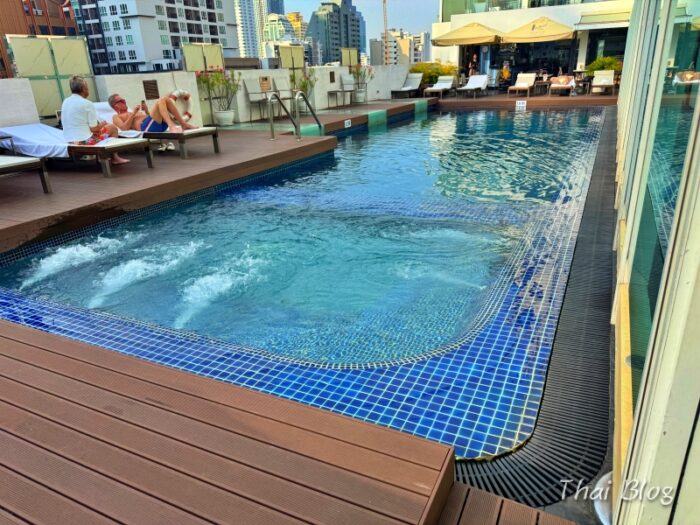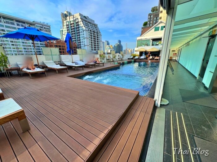 ホテルの屋上にあるプールは、開放的な雰囲気でゆったりとくつろげる空間になっています。