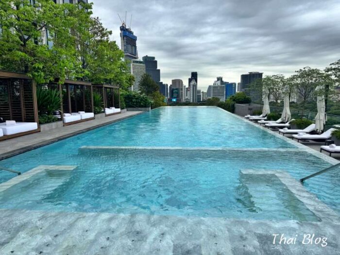 ザ・リッツ・カールトン・バンコクのプールの素晴らしさは、バンコクの喧騒を忘れさせてくれるほどの静けさと、高層ビル群を見渡す開放感の両立にあります。