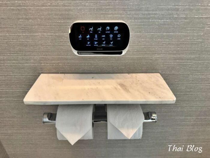 トイレットペーパーホルダーの上には、最新鋭のタッチパネル式リモコンが!