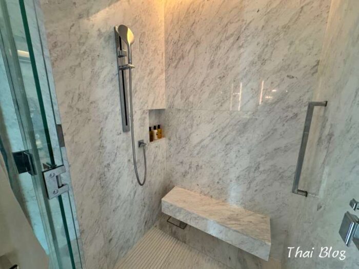 大理石のベンチがあるので、座りながらゆっくりとバスタイムを楽しめます。