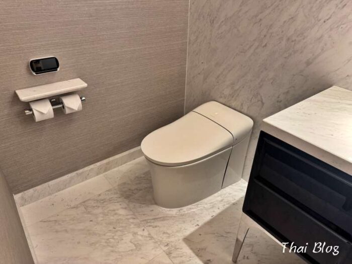 トイレも清潔感あふれる一体型で、非常にスマートなデザイン。