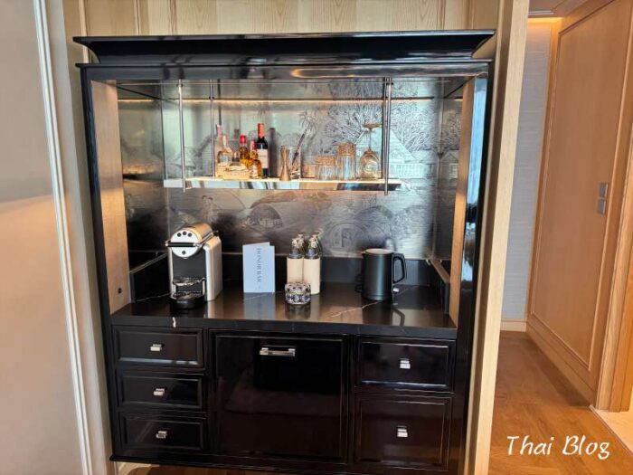 備え付けのキャビネットには、充実したコーヒー・ティーセットとミニバーが。