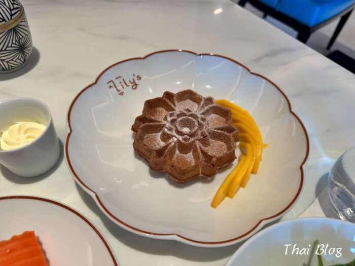 タイティー風味のワッフルとマンゴーとホイップクリームの組み合わせが絶妙!